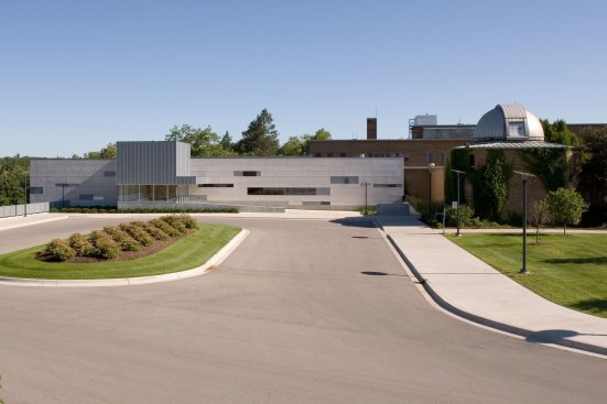 This 11,000 sf new building addition to the Institute of Science at the Cranbrook Educational Community includes a multipurpose meeting and community room, museum lobby, museum storage and related support facilities. Located at the south west quadrant of the museum complex, the project re-organizes the Institute’s entry sequence with a new entry plaza, 200 car parking deck and bus drop-off. The parking deck is cut into an existing meadow to reduce its visibility from the surrounding area. The original Institute building was designed by Eliel Saarinen, the noted Finnish architect and is on the national historic register. A major addition design by Steven Holl and completed in 1996 is located at the opposite side of the building. The proportions of the building recall the strong, horizontal lines of the existing structure. The fiber cement and zinc panel rain screen façade is organized in a random, ashlar pattern that is reiterated in the wood paneling covering the interior service volumes. The meeting room is designed as a multi-use space to accommodate a wide range of activities including school group lunches, lectures and fund-raising events. A series of full height doors connect the meeting room to the rest of the lobby allowing the two spaces to be combined for large events.