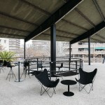 The suspension and foot lamps, designed by Dear Design, combine two original structures of the BKF chair, an original design of Antoni Bonet, with a flexible fabric skin. The pre-existing colors of the original building, yellow mustard and light blue, are recovered in the table lamps, designed by Dear Design, in the metallic structures of the tables, as well as in the vinyls of the facade that protect the offices from the sun.