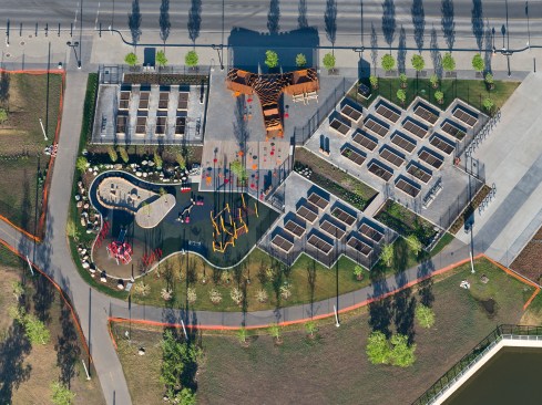 The East Village site is about halfway through a 20-year development plan that’s set to include housing, commercial, retail, and civic spaces, including a new central library designed by Snøhetta. Eventually, East Village will be home to around 11,500 residents. But for now, the community is getting its kickstart in the garden and its new public space. Thompson says the design, along with active programming, is helping to show East Village’s growing population that a nascent neighborhood can still have a heart. “Even though it’s not fully built out yet, there’s a pride of place here.”