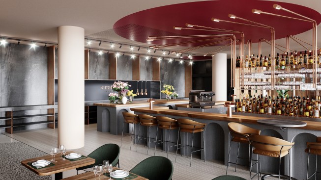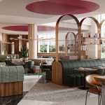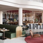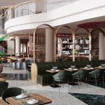 3D visualization of the new restaurant interior design at Crowne Plaza Brussels Airport.