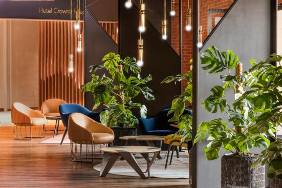 The main motif of Crowne Plaza’s interiors is Vistula River – its wild nature, sun and sand of beaches located along the Vistula. That is the reason for golden and brass elements, which remind of golden sand, and motifs reflecting the river on the floor in the hall and in art pieces. Respecting nature was important to the architects from Tremend studio – which was not only manifested in references to the nature but also in conscious choice of materials. They used eco-friendly materials from verified manufacturers.