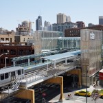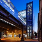 The same site had an elevated station from 1893 to 1948, at which time it was closed and demolished due to lack of regular use. The Market is still identified by its sights, sounds and smells, being comprised of wholesale and retail meat and produce vendors, but today, it is the rich combination of warehouses, industrial spaces, off-the-beaten-path restaurants, specialty food purveyors, loft conversions and boutique stores that are the essence of the neighborhood’s character. To reinforce this character, material selections for the project take their cues from the neighborhood—steel, glass, concrete, polycarbonate, granite and cast iron are all used in adjacent structures.