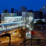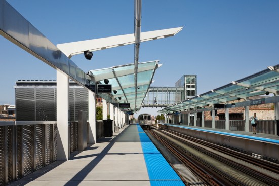 While emblematic of the neighborhood, the project asserts itself as part of a larger context—the CTA’s rapid transit system and its relationship to the City of Chicago. The location of this station with its sweeping views of the skyline, along with its form that provides a sense of enclosure for the elevated tracks, creates both a literal and metaphorical gateway to the Chicago Loop, and serves as a strong emblem of the modernity of Chicago’s mass transit system.