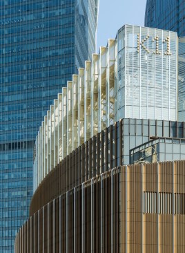 At its base, the tower is linked to public transportation through basement-level connections and to adjacent buildings via pedestrian-level bridges. An unprecedented mix of programs is defined by four main transition points; the program ascends from office, to residential, to hotel, to its record-high crown. The program also comprises ballroom, retail, restaurant and cinema spaces, with a nearby central park and underground retail concourse that further enhance its urban connectivity.
