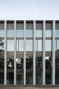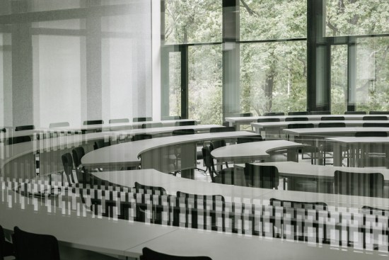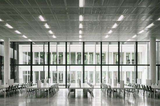 Located in the north-west corner of the campus, which is characterized by an orthogonal plan, the 11.000 square-meter building serves all faculties and it is in constant use by some 2.200 students and lecturers that cross its spaces every day. CUBE is anchored to the landscape by paved pathways that guide users to its entrances on the south-side corners. It is a secluded space for study that feels like an opening in the woods.