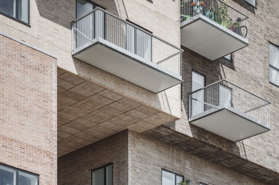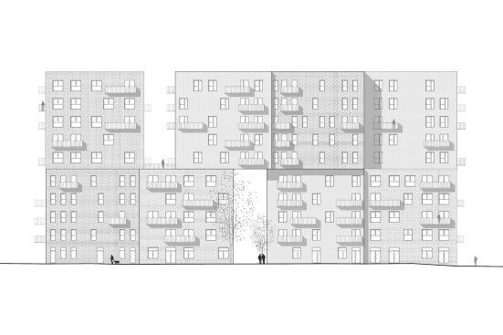 In its basic concept, Cubic Houses is a regular building slap with spacious and simple apartment layouts. Maintaining the vertical stairways, the eight brick cubes shift in relation to each other, both at the ground floor and higher up. The shifting of volumes breaks eventual turbulence and adapts the building to local microclimatic conditions.