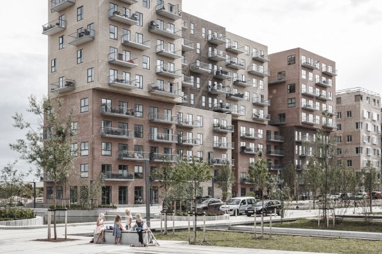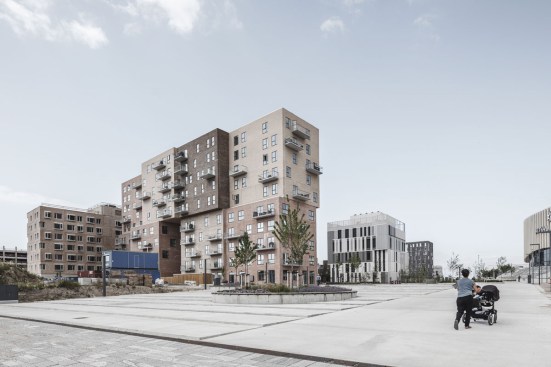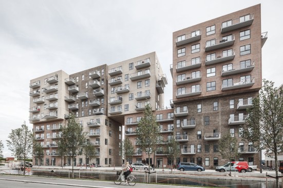 The Cubic Houses in Copenhagen, DK shows a playful residential complex that breaks down the scale of a large building volume while offering a generous variation to the in-progress development of a new neighbourhood.