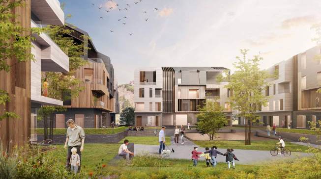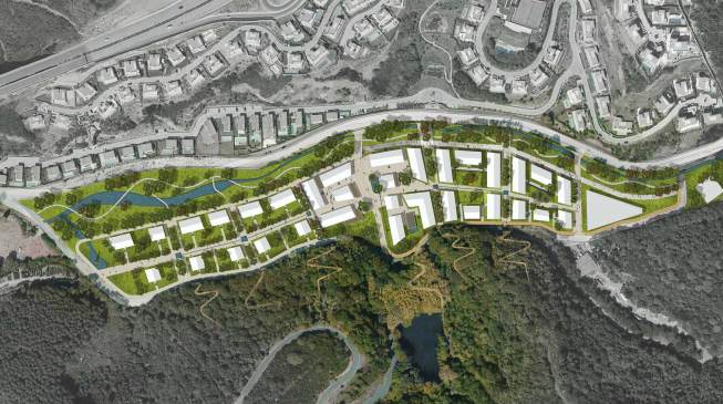 A new public park, which forms a buffer strip along the northern boundary of the site, either side of the existing stream, between the development and the road. This is to be an extension of the Cubuklu forest area.