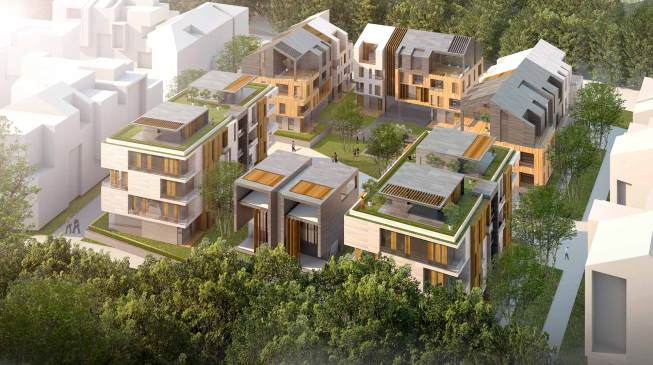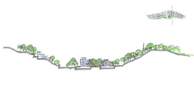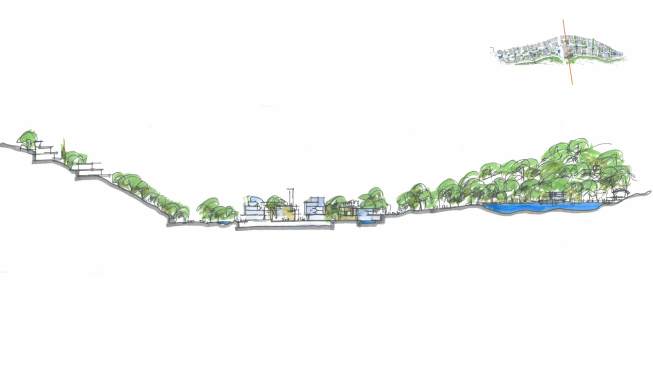 Nature (flora and fauna) corridors crossing the site, connecting the existing forest and new public park. The natural, existing ecosystem is also to be extended as far as possible into all other areas of the development, to protect and enhance biodiversity, and for the enjoyment of the users of the development.
