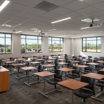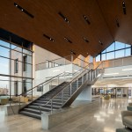 Serving as the junction between the entry to the campus and the other academic buildings on site, the new 43,000 square foot, two-story Campus Center serves as the social and intellectual heart of the North County Campus. The open floor plan design creates a light, vibrant and interactive environment for the staff, students and community. Beyond the welcoming lobby of the Campus Center lays the cafeteria and kitchen, public safety center, assessment center, student life & leadership, fine arts classroom, Veterans center, health center and the student bookstore. The main interior stairway leads students, faculty, and guests to the second floor where they can find additional classrooms, computer lab, Administrative Services and the Dean's offices. The student activities were strategically placed on both floors of the building to inspire greater interaction and communication between students and staff. The computer lab features a two-story atrium that creates a striking central core element in the building as well as allows natural light into the space. The combination of these program elements with the inspiring and functional design elements promises a dynamic and vibrant center for campus life.