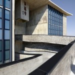 From thousands of years the Yi people have been considering the plateau a sacred place where to worship heaven and earth and celebrate the ‘Torch Festival’, one of their main holidays. The festival commemorates a famous Yi wrestler who used pine tree torches to stop a locusts’ plague. Symbolism has always played a significant role in West-line Studio’s work, and in this cultural center the connection with Yi ancient culture appears through many layers. First of all the building mass resembles the traditional Yi sacrificial altar, where sacrifices refer to offers. The building, in its simple volume, is characterized by an iconic roof consisting of a concave arc. This architectural gesture aims to show a response to the tension of nature, and again refers to Yi sacrificial symbols. The roof establishes a dialogue with the sky through the skylight system and the concave shape works as a rain water collector. Via the gutter system the water vertically flows through the outdoor courtyards, creating a vertical connection of light and rain throughout the building, while solving the internal lighting and ventilation. Another important feature are the outdoor concrete ramps, which with their folding and undulating movement evoke the ascension procession over to hills during the ‘Torch Festival’.