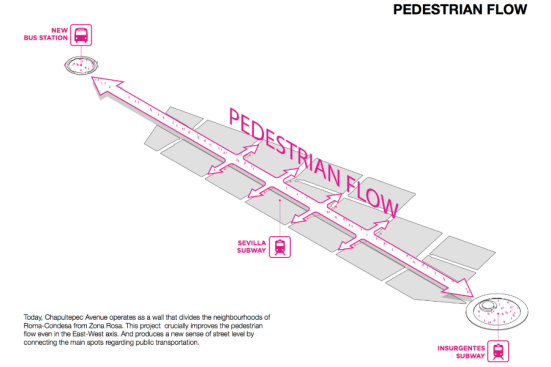 Insurgentes. Along this area of 0.8 miles (1,3 kilometers), urban space will be