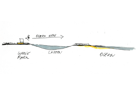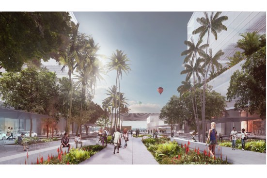 Back on the mainland, the master plan will coalesce around a newly expanded Currie park, which will extend out across the city from its current waterfront location via a pair of leafy ramblas. The project will anchor a new, lively part of the city, featuring residential towers, a pool terrace overlooking the sea, and a retail area that will include a food hall dedicated to organic products. The master plan will also reshape the waterfront’s overall terrain. On the north side of Currie park, where a parking lot stands now, a gently sloping hill will be created, allowing pedestrians to access the area and opening up the view towards Palm Beach’s narrow stretch of land and the ocean just beyond it.
