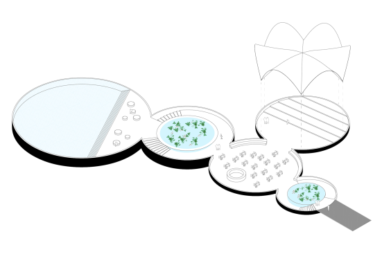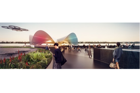 A pair of leafy ramblas will allow people to stroll from the city center of West Palm Beach directly into the middle of the lagoon. Here, Carlo Ratti Associati will build a floating plaza that sits on the water, partly under the sea level, thanks to a system of responsive air chambers similar to the ones used by submarines. The floating peninsula will incorporate a series of public facilities, including an organic restaurant with its own hydroponic cultivations, a circular pool, an auditorium, and a water plaza.