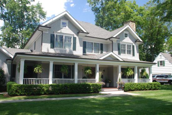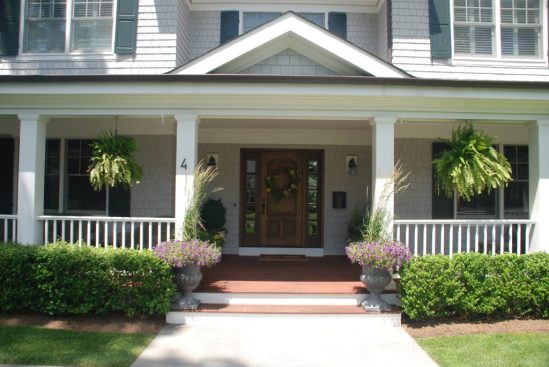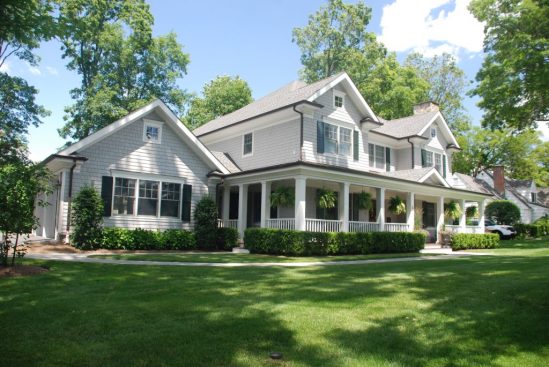 This custom colonial home in Rye NY was designed for a developer on a “tear-down” lot. We designed a classic colonial style home wrapped with cedar shingles finished with bleaching oil, stone veneer, white PVC trim, and copper roofing.