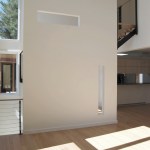 The overtly modern and crisply orthogonal design of the house lent itself easily to the efficiencies of off-site modular prefabrication. The entire house is made of nine modules that were carefully planned to be built in a factory in Pennsylvania and transported safely through four states, each having their own unique highway transportation requirements. All modules were custom prefabricated complete with pre-installed wiring, rough and finished plumbing, fire suppression sprinkler system, lighting, wall and ceiling finishes, doors and windows, insulation, trim, etc. — virtually everything except wood flooring and custom cabinetry that was built locally. Fabrication took two months after the building permit was issued, and assembly of the nine modules on site took only three days. Interior finishes and stitching together of exterior finishes took an additional four months, a substantially shortened time frame relative to traditional residential construction, and the final costs came in below what one would expect locally for a conventionally built house.
