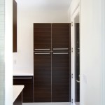 Zoning restrictions required working within the existing house’s footprint; however reconceiving the form of the house above the foundations had the benefit of allowing for a design freed from the constraints and planning inefficiencies of the original house and its long narrow hallways and miniscule kitchen and bathrooms. Adding an expansive office space and sound isolated listening room on a mezzanine level freed up space on the main floor for a south-facing “courtyard” where the original tiny office and exercise room had been. The courtyard separates the bedroom area from the living area, and brings much-needed winter sun deep into the heart of the house. The new house has a more varied three-dimensional character, with a twenty foot high living space and dramatic sculptural steel staircase set in a three-story high glass-walled foyer.