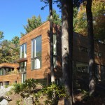 Our software entrepreneur clients loved their split-level mid-century modern house and its private, heavily-wooded acreage surrounded by an Audubon Sanctuary. They initially hoped to substantially renovate and add on to the house they had lived in for many years, matching new and old into a seamless whole. However, a thorough review of multiple renovation strategies and their associated costs, in coordination with local contractors, revealed that it would be less expensive and less time-consuming to both start from scratch and to use a custom designed prefabrication project delivery method. The original house was much loved, but there was just too much deferred maintenance and our engineers concluded that the existing foundation was inadequate to meet basic structural needs.