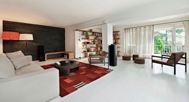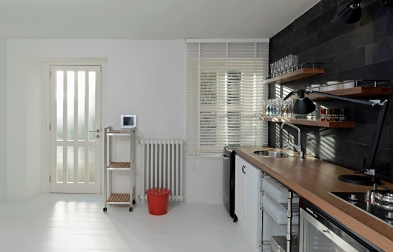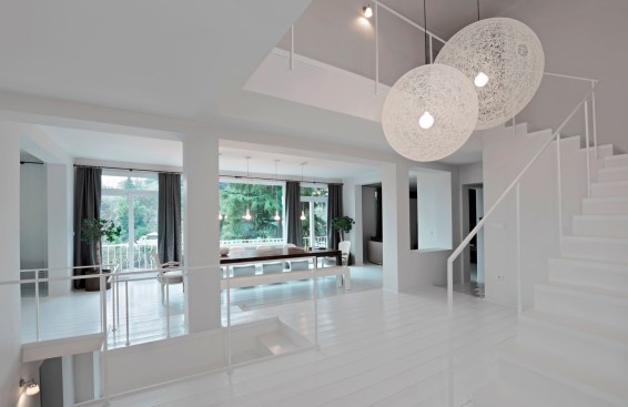 It is designed as an all white house full of light, with some iconic modern furniture. The first floor acts as a living area while the ground floor is a cosy nest for a guest. White painted wooden laths continue all around the house, reminding the old Istanbul Bosphorus houses, while creating a sleek, clean, continuous environment.