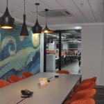 All meeting rooms and cabins have added colour elements reflecting the company colour. Whereas the board room and directors area is designed in pastels and on more formal approach. As most of company’s staff is young so lots of artwork is executed by local artist in company’s theme colour.