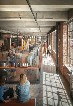 In a densely populated city where real factories have become scarce in recent decades, Gensler’s project is a model of neighborhood-friendly manufacturing, with an interior as sweet and mellow as their client’s signature product.
