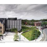 The Daniels Building at the University of Toronto embodies a holistic approach to urban design and sustainability. As the new home for the John H. Daniels Faculty of Architecture, Landscape, and Design, its purpose is to engage students and the broader community in dialogue about the built environment. At the center of one of Toronto’s few circular parcels, the project anchors the southwest corner of the University and opens the circle to the public after years of inaccessibility. It restores the historic building while integrating a new addition with integrated stormwater management, a green roof, voided-slab floors, and ample daylight.