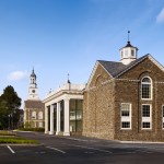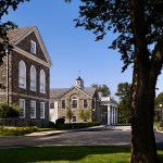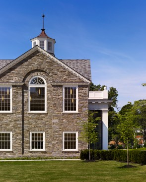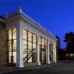 The site is directly adjacent to the signature main building of the school, at the front entrance of the campus. This position requires a design of the exterior that is both exciting and supportive of the iconic image of the campus. A two-story columned front with floor to ceiling glass will glow as a lantern on performance nights creating a “see and be seen” moment and reinforcing the drama of anticipation as the guests enter into the main theater level and the balconies. Solid stone walls serve to visually connect this new structure to the Main Building.