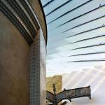 The strategy paid off: MUMA got the job. MUMA designed the museum’s new Daylit Gallery to connect the previously segregated Medieval and Renaissance galleries under one roof—specifically, a glass ceiling composed of translucent glass beams, some more than 30 feet in length, supporting glass panels to form an undulating roof. By removing existing stairs and installing the roof over interstitial spaces between the existing suite of medieval galleries, MUMA created a new public space for the museum, which is a Grade 1 listed historic building, meaning that it could not be altered without special planning permission.