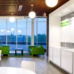 From the beginning of the project, members of the client, design, and contractor team came together to develop a strategy that would add much-needed parking, warehouse space, and offices to the existing location – all while keeping staff in place and operational throughout. The result is a solution that connects on multiple levels: large expanses of glass bring in daylight and views of the river; layout and amenities bring warehouse and office employees together; and the building connects to the public realm by putting functions on display for all to see.
