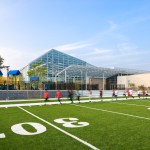 Sited at the north end of an existing 5.8-acre park in Northeast DC, the new community center anchors and integrates with the park. This location ensures that the park continues to offer a flexible configuration of playing fields for both the school and the community center. Additionally, the new building respects and enhances the park’s existing landscape.