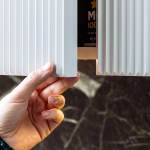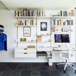 And then there are the bedrooms (one of which is repurposed as an office, shown above). When we first saw your original closet—created with ceiling-mounted sliding doors and cheap hardware—we could see you cringing. Lafayette Park is no Villa Tugendhat, so we understand that the budget didn’t allow for the same intricate wood veneered millwork that you generally use instead of closets. Our budget didn’t afford it either. Instead, we borrowed your clever soffit detail at the facade and created a similar nook in the closet. Now on both sides of the room the intersection of vertical to horizontal is tucked out of sight.