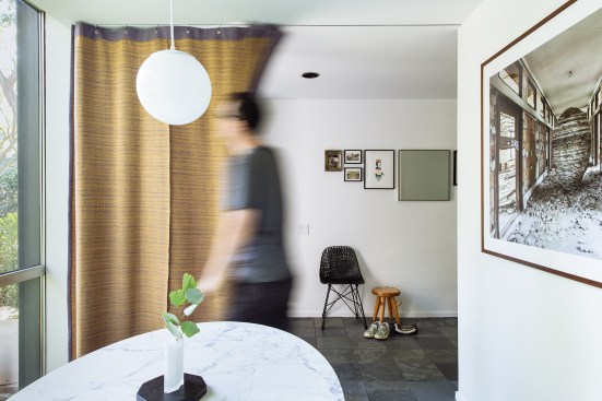 We noticed in some of your drawings that there is a curtain separating the entryway from the dining room. For some reason it was never built in any of the houses, but we finally installed that for you. It’s not exactly a restoration because you can’t restore something that was not built, but our friend Jason suggested we call it a “director’s cut” and that seems about right. Thought you might get a kick out of this posthumous victory. Also, it’s good to have a bit of Lilly’s voice in the project.