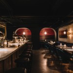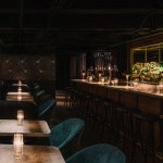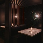 The intimate 30-seat bar at the entry provides a space for patrons to wait with a cocktail for a seat in the larger 80-seat bar beyond. The pullman booths are strategically tucked between large columns throughout the space, giving an opportunity for a layered sense of intimacy within the larger space. The bathrooms at provided an opportunity to bring out more of the rich colors peppered throughout the rest of the space, each one fully saturated in a single color to immerse the patron in its glow.