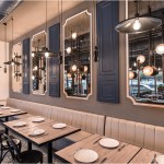 Within the 150 square meter restaurant, sky-blue floor tiles, pastel yellows matching with the colours of the tiles, vintage mirrors, the wall cheetahs that are inspired by the past trends, magnificent special designed bronze lightings and dark thonet wood chairs harmonised with the restaurant culture, those details reflect the historical context from inside of the restaurant.