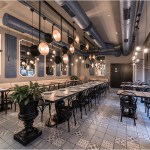 Hanged down vintage lightings located above the tables combine with the dominant of Edison lamps, that give hot yellow light, used by aiming with the nostalgic effect.