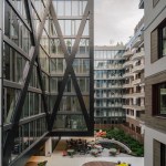 Other amenities endear the project to neighbors as well: In addition to a ground-floor mix of retail and community facilities, the linear park is open to the public, and appears as a street to neighbors; two of the five interior courtyards are promised to be open to the public as well. “Those courtyards have food-and-beverage and a supermarket,” Chen says. “The scale is very intimate, but there’s a diversity of types of activity and details, each one with its own character.”
