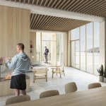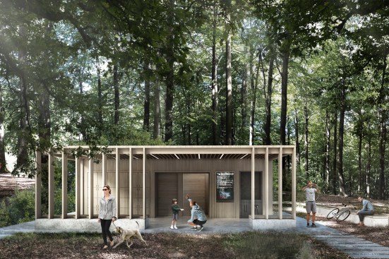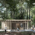 As part of the new national rowing center, a referee tower will also be constructed. Inspired by the expanse of the lake and the forest’s soaring trees, the tower rises up to form a sculptural wooden structure. The façade’s pattern with vertical wooden slats gives the tower an architectural affinity with the rowing center and a vertical expression that serves as a contrast to the horizontal lines of the spectator stands. The idea behind the tower is to create a construction that, by virtue of its materiality and simplicity, is naturally suited to the environment, but which simultaneously differs from it and constitutes a visual landmark seen from the lake. In addition, facing the forest, the tower has an integrated climbing wall and pull-up bars for outdoor training. Together with the covered terrace, this makes the tower an ideal destination for a wide range of users.