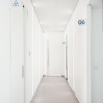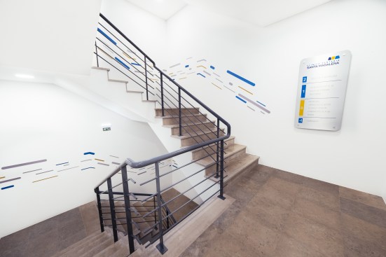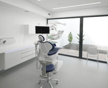 The dental clinic and backoffice develop over two floors. The inspiration for this project is the windows with a view of the Sintra natural world, which floods the central area of the waiting room with natural light and around which all the compartments have been developed. Entry to the clinic and offices is through the main entrance to the building, and there is separate routes for each of the spaces, the clinic and the offices. The area defined as a clinic includes a waiting room and service room located on the main facade of the building and in the central area with the skylight, there is a meeting room, two public toilet facilities, one of which is adapted for people with reduced mobility, and three administrative offices.