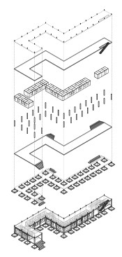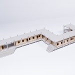 The building consists of two discrete systems – a concrete frame structure and modular programmatic elements. Ultra-lightweight honeycomb sandwich modules are prefabricated in Germany and shipped to India in overseas fright containers. The lightweight structure is designed to perform as a prototype for disaster relief pavilions and other building types which require fast construction and minimum planning.