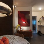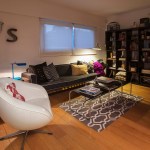 A reorganization of the program of this apartment was done to make the most of the double height and large window of the living dining room and changing the second one to another area to have a more ample entertaining space. The great wall that marks the entrance was left in white and four pieces of the ancient lattice of the perimeter wall of the former UDLA in Mexico City — very close by— were hanged on it. The geometry of the pieces, the grand window and the staircase take advantage of the space and welcome into a more intimate area filled with texture and color where the sitting area was located made of a careful selection of lounge chairs and original pieces.
