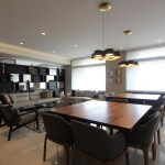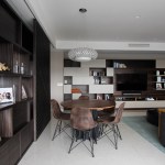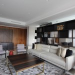 The materiality approach complements the existing marble floor with warmer finishes such as the wood that was used for covering some walls and part of the furniture. This contrast was harmonized with a color palette based on neutral tones that highlights the selected dark woods to give a greater contrast.