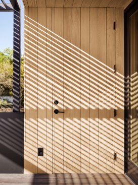 A fourth millwork core volume consolidates back-of-house functions allowing for maximum glazing at the building perimeter and connection to the outdoors. It also acts as a unifying element between the first and second floors and the separate realms of the house and site.