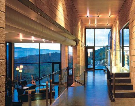 Like the builders of the Presidio houses 200 years ago, Ibarra, Rosano, and Repp chose natural materials that connect the structure to its environment. They also tried to create the loft-like atmosphere the client wanted. The Integra concrete masonry units that form the exterior and interior walls were sandblasted to give them a smoother texture. Commercial storefront windows and polished concrete floors complement the open, Modern interiors. And the concrete floors’ straightforward beauty makes them completely appropriate to the history and culture of the area. “We don’t like a lot of tiles and ‘Southwestern’ stuff,” says Ibarra. “Finding the simplest way to get somewhere is a very Tucson thing.”