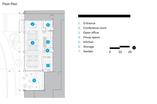 A European-cut White Oak floor and rift sawn White Oak cabinets and screens soften the raw concrete frame. Unfinished cork, burlap-wrapped Homasote and mill-finished steel complete the material palette, highlighting the inherent beauty of simple materials. The material qualities of the space, enhanced by changing natural light throughout the day, establish a tranquil but dynamic environment conducive to collaboration, creativity, and productivity. The ensemble of materials serves as a touchstone to a firm ethos of creativity and interest in the serendipitous and tangible quality of raw materials.