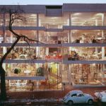 Benjamin Thompson, a practicing architect and faculty member at the Harvard Graduate School of Design, designed the headquarters for the innovative retail store selling European furnishings and Scandinavian design with framless glass walls to showcase the items to residents of Cambridge.
