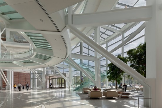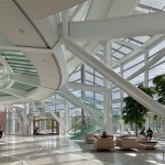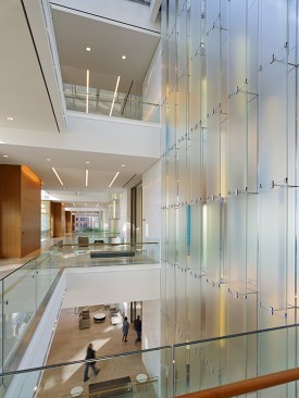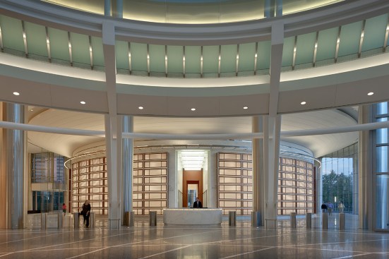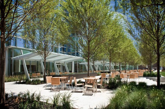 Devon’s new world headquarters serves as a focal point for the company and for Oklahoma City. Characterized by civic-scaled spaces, the corporate headquarters brings Devon’s local workforce together in a single state-of-the-art facility. A six-story glass rotunda with interior balconies serves as the entrance and connecting hub for the entire complex — and a dramatic setting for special events. The five-story podium houses the conference and training centers and employee amenities. The indoor Galleria includes dining areas overlooking the new park and landscaped plazas that are key elements in the overall site strategy.