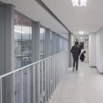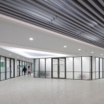 The Triangle School implies the different characteristics of its three bordering sides. The playground to the north, the hill to the east, and the existing building to the west are three different surroundings. These factors lead to three different elevations – opened, closed, and compromised – which are arranged within the layout of the triangular building. The façade of the building with a transparent skin is defined by vertical louvers, an architectural device that maintains an appropriate balance between illumination and privacy. On the contrary, closedness is the way of responding to the existing building to the west which has different programs. It is a middle school building with a wholly separate operational system. Thus, this existing structure needs to be functionally distinct from the Triangle School. For this, based on the closed concrete wall, one single triangle-shaped window minimizes mutual interference, implying the geometry of internal space.