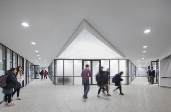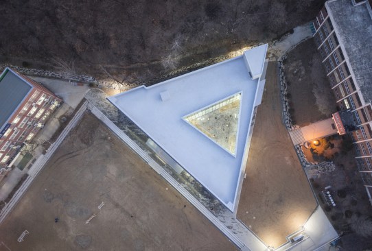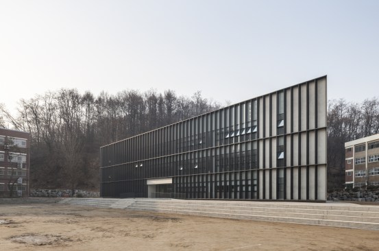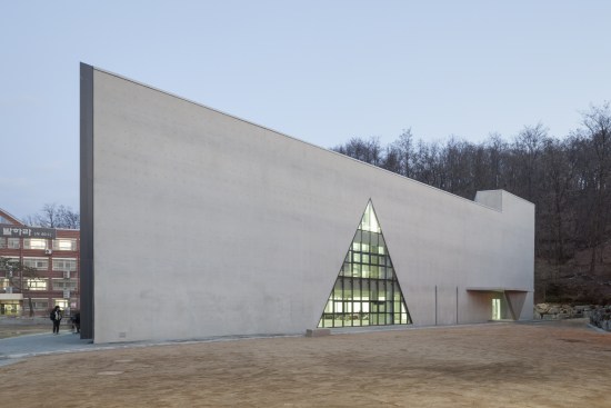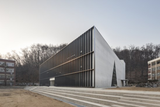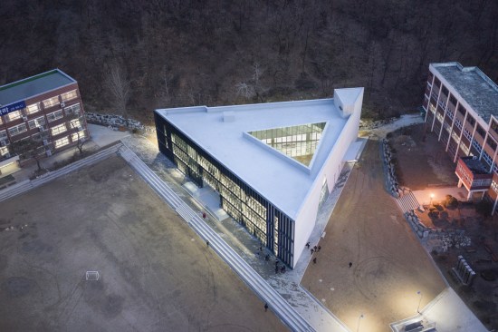 The Triangle School stages relationships between people, place and education. The interactions between the three elements reveal the complexity of the architecture. Yet, they simultaneously function to make a simple point of intersection. Located in Namyangju, adjacent to Seoul, this high school building explores new possibilities of the educational architecture through the dialectical interpretation of such complexity and simplicity.