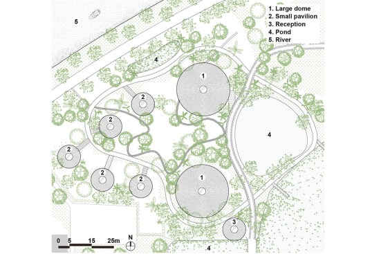 bamboo structures and measure 24m diameter and 12.5m height. Inspired by a