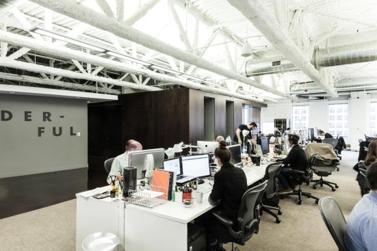 Opportunities for interaction in the main workspace, which offers expansive city and terrace views, are found in a constellation of breakout spaces for employees to gather and collaborate, including a long work counter and flexible seating areas. A key design feature is the live pin-up wall, which is integral to the company’s creative visioning work. A new central conference room and smaller meeting rooms offer areas for private gatherings. Compared to Digital Kitchen’s previous compartmentalized office, this new highly adaptable workplace encourages the agility and malleability essential to creative design work.